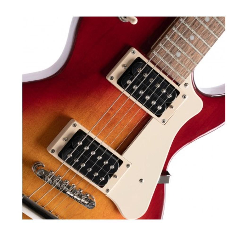 The Cort CR100 brings iconic Les Paul style and warm humbucker tone in an affordable package. Featuring a carved maple top over mahogany body, bolt-on Canadian maple neck with jatoba fingerboard, dual Powersound humbuckers, and a Tune‑O‑Matic bridge with stop tailpiece, it delivers solid rock performance and rich sustain with standout value.