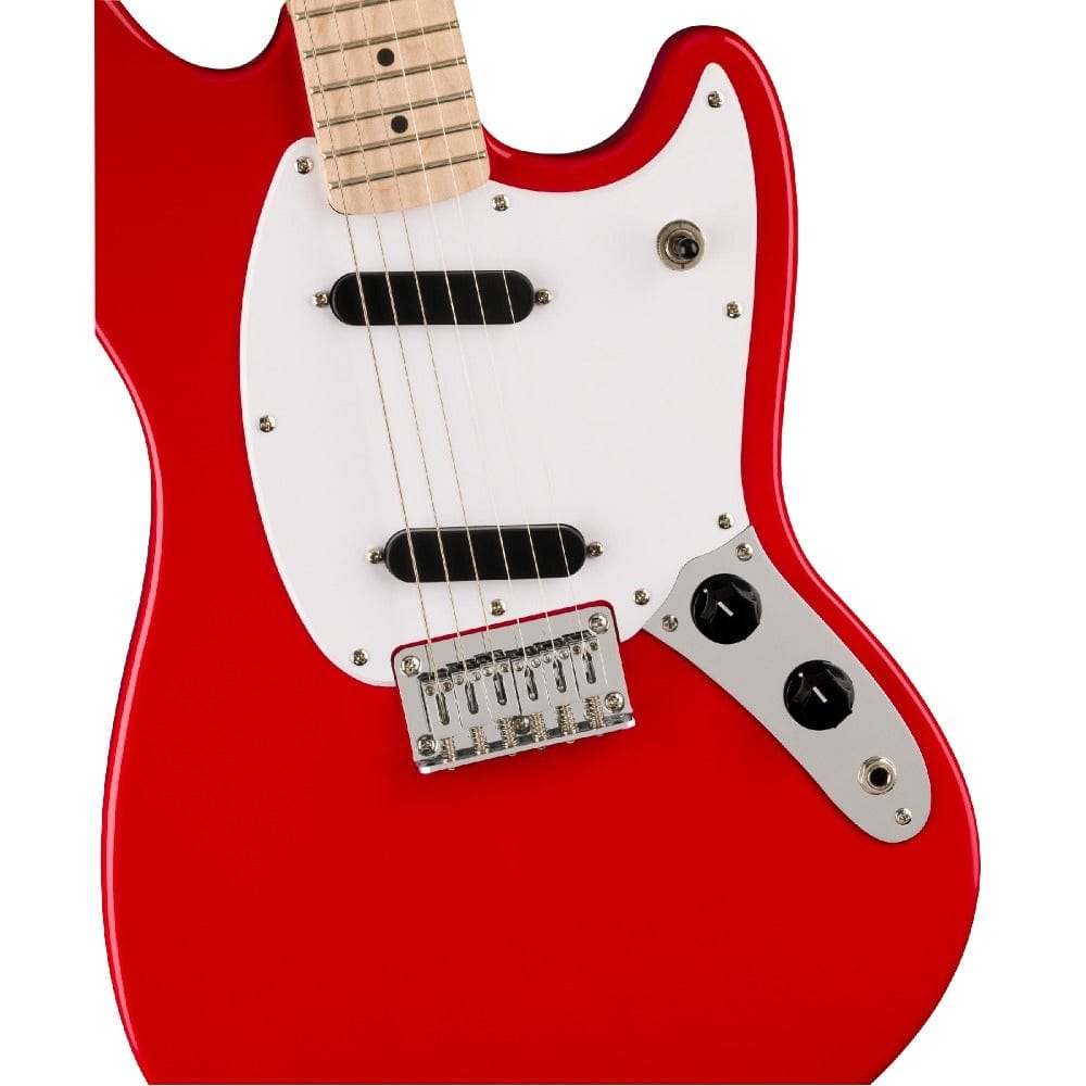 The Squier Sonic Mustang packs classic offset style into a compact and playable guitar. Featuring a short 24″ scale poplar body, satin “C”-profile maple neck with maple fretboard, 6-saddle hardtail bridge, and sealed tuners, it offers crisp SS tone or beefy HH output. Ideal for beginners, modders, and anyone wanting spirited, grunge-inspired playability.