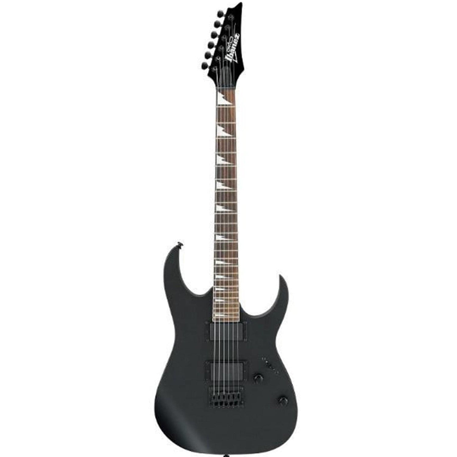 The Ibanez GRG121DX is an entry‑level RG‑style guitar that delivers shred-ready performance at an affordable price. It features a GRG maple neck with a fast, flat 25.5″ scale and 24 jumbo frets, dual IBZ‑6 humbuckers, and a fixed F106 bridge—all housed in a sleek Poplar (or Okoume for Walnut Flat) body with a purpleheart fingerboard and shark‑tooth inlays. Ideal for rock and metal beginners.