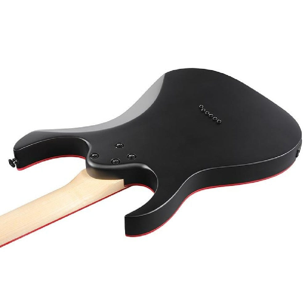 The Ibanez GRG131DX RG Gio delivers full-on shred capabilities at an entry-level price. Featuring a sleek poplar double-cut RG-style body, GRG maple neck with treated New Zealand pine (or Purpleheart on newer models) fretboard, 24 jumbo frets, and dual Infinity R humbuckers with 5-way switching—this guitar is built for aggressive, high-gain tones with tight performance. A fixed F106 hardtail bridge and lightweight Black Flat finish complete the package.