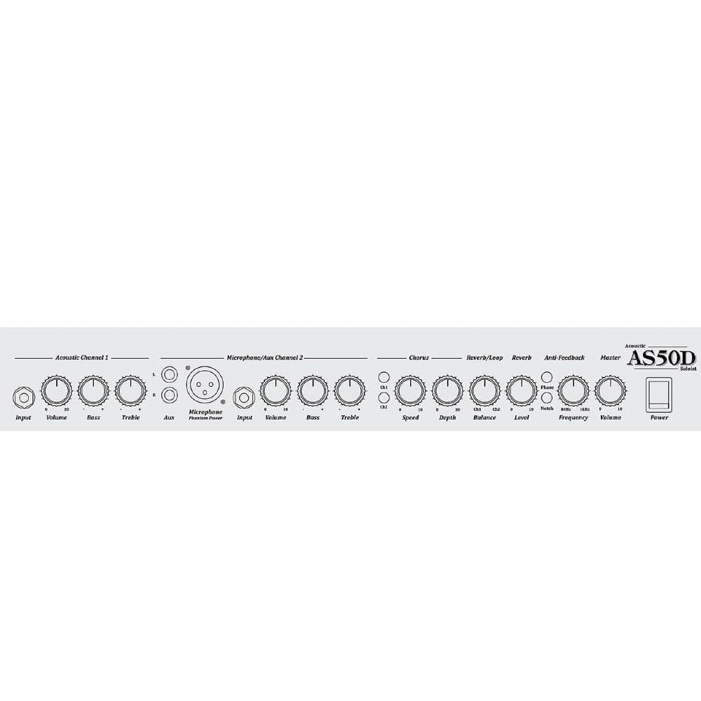The Marshall AS50D is a powerful 50-watt acoustic combo amplifier tailored for acoustic guitars, vocals, and more. Featuring two channels with selectable inputs (instrument and mic/aux), it includes built-in chorus and reverb, an anti-feedback system (phase switch + notch filter), and dedicated DI/line outputs. With 2×8″ speakers and a tweeter, this compact amp delivers clear, balanced sound suitable for small venues, home practice, or studio sessions.