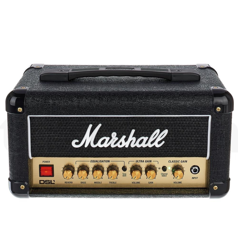 The Marshall DSL‑1HR is a compact 1 W (switchable to 0.1 W) all-tube amplifier head delivering classic Marshall tone. Featuring dual channels (Classic and Ultra Gain), 3-band EQ with Tone Shift, onboard reverb, and series effects loop, it offers versatile performance and recording-ready output. This powerhouse includes footswitch support (PEDL‑90011) and emulated line/headphone output for home and studio use.