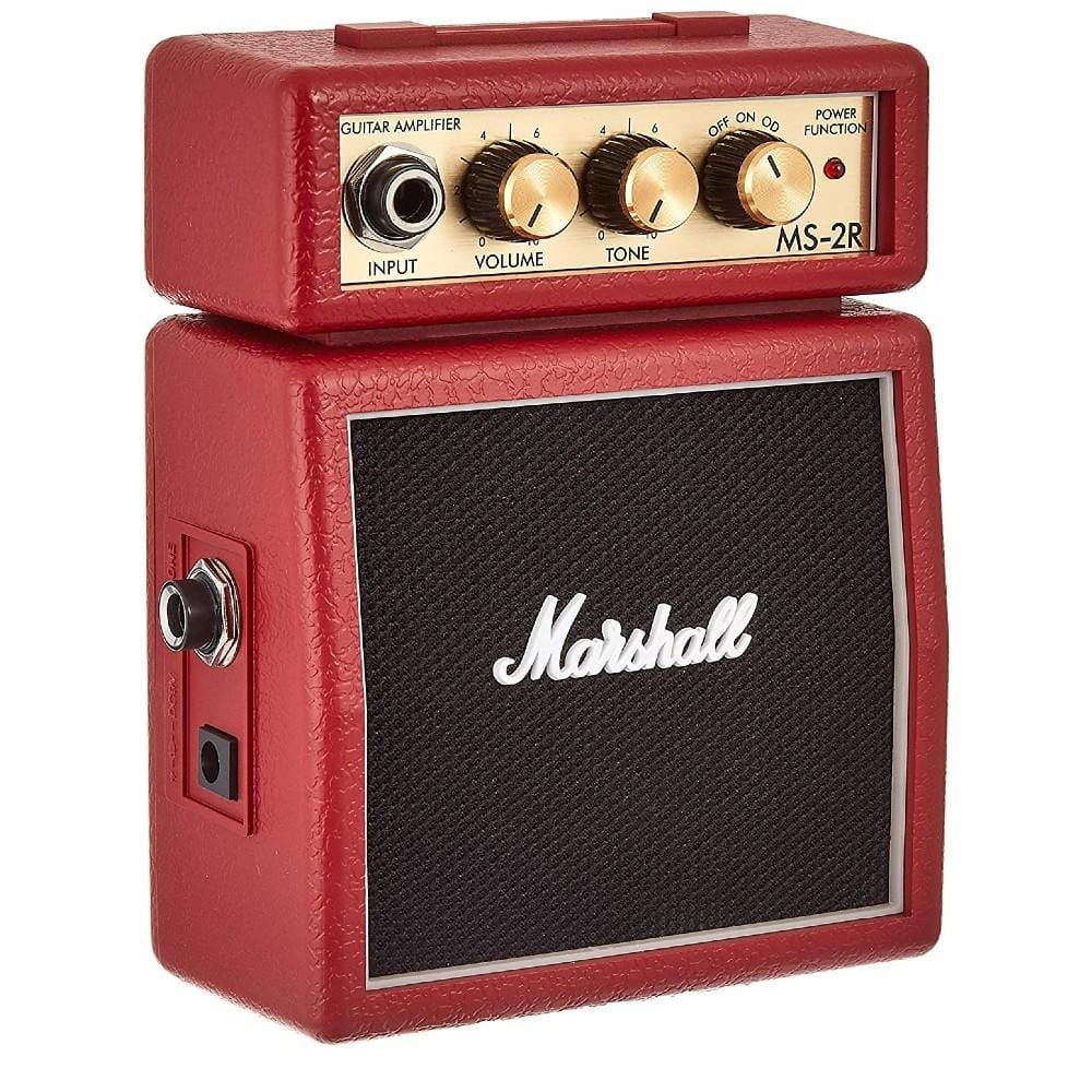 The Marshall MS‑2 Micro Stack packs 1 W of authentic Marshall tone into a pocket-sized, battery amp. It features clean and overdrive modes, tone and volume controls, a belt clip for portability, and a headphone/preamp output—perfect for practice, travel, or jamming on the go.