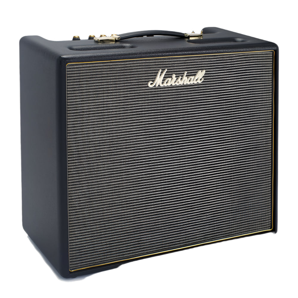 The Marshall Origin ORI50C is a 50-watt all-valve combo amp (switchable to 10W/5W) featuring a 12″ Celestion Midnight 60 speaker and all-tube circuitry with 3 ECC83 preamp tubes and 2 EL34 power tubes. Its controls include Gain, Master, 3-band EQ plus Tilt and Presence, along with switchable Gain Boost, FX loop, and selectable power settings. This amp delivers rich British tone with studio-ready features in a compact format.