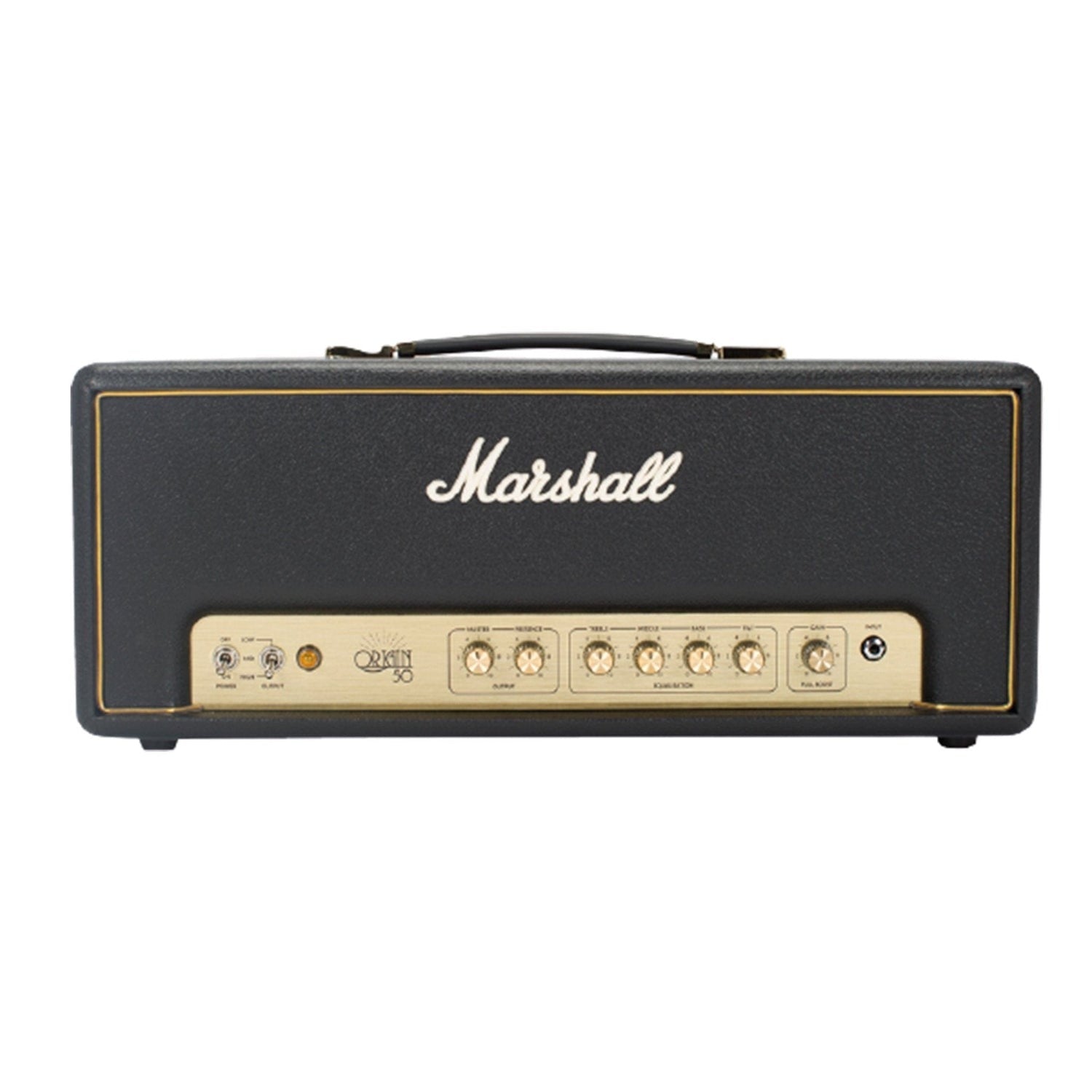 The Marshall ORI50H Origin is a 50 W all-valve tube amplifier head with selectable power modes (50 W / 10 W / 5 W). Featuring three ECC83 preamp tubes and two EL34 power tubes, it offers classic Marshall tone with modern control via Tilt EQ, footswitchable Gain Boost, and a series FX loop. Durable yet compact, it's perfect for stage, studio, or home setups.