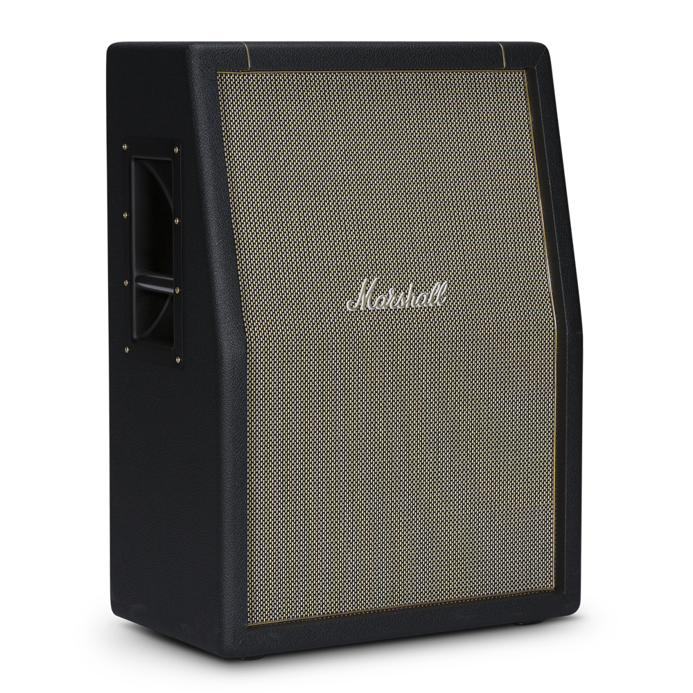 The Marshall SV212 Studio Vintage Cabinet is a compact 140 W (8 Ω) vertical 2×12″ slanted cabinet loaded with dual Celestion V‑Type speakers. Built with vintage styling and a rugged, closed-back design, it delivers rich lows, chimey mids, and crisp highs—perfectly matched to SV heads or any amp needing focused British tone.