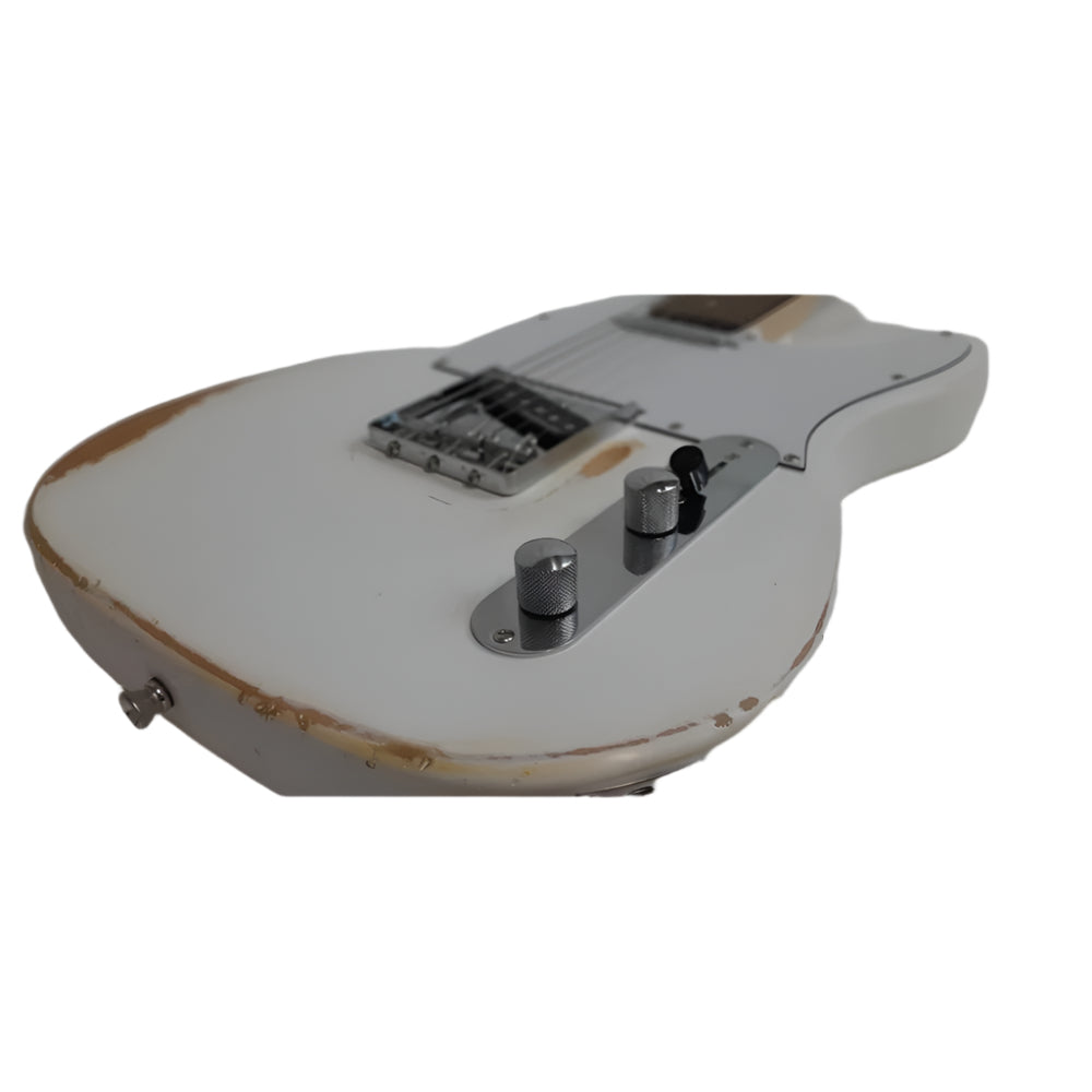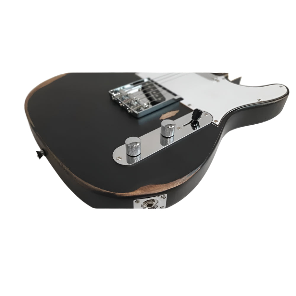 The NEWEN Relic Telecaster Style Electric Guitar from Argentina features a unique relic finish that highlights its hand-aged character. Crafted from solid white oak, it offers rich harmonics and sustain. The maple neck with rosewood fretboard and steel-core truss rod ensures tuning stability and smooth playability. Finished with semi-lacquer and Poliuretano satinado, it showcases natural wood grain. Equipped with Paradinamic® Bridge and Neck pickups, a 3-position selector, 22 frets, synthetic bone nut, and chrome hardware, this guitar delivers versatile tones and reliable performance for professional players.